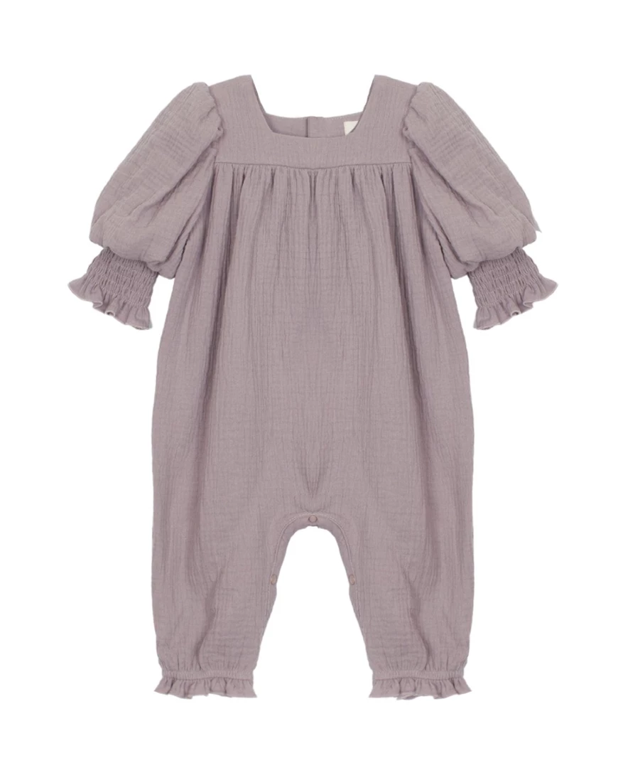 Iris Woven Gauze Romper Purple by Mabel & Honey.