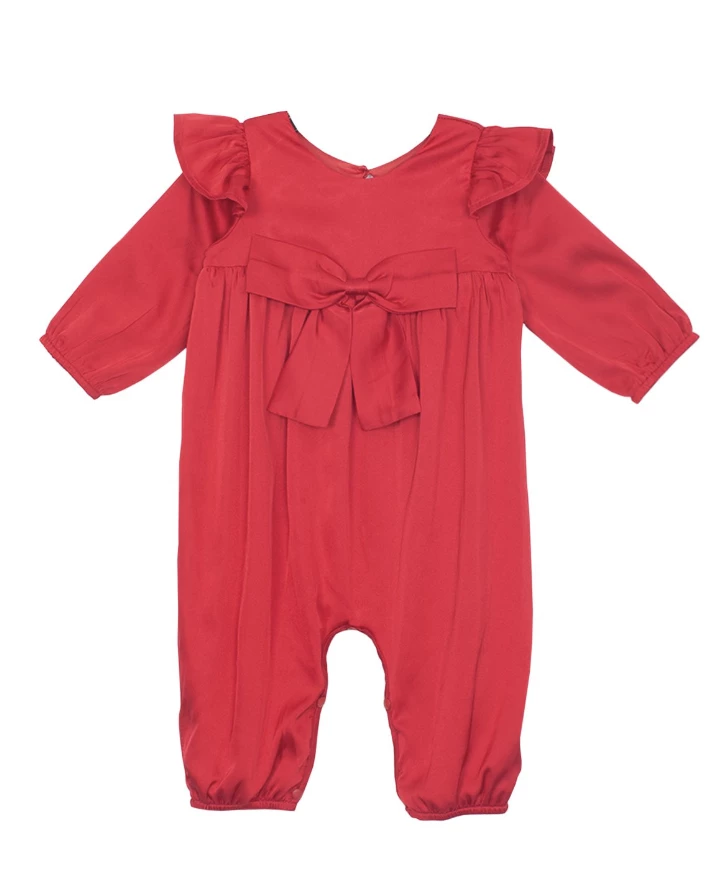 Mabel & Honey Scarlett Romper with Ruffles & Bow Detail.