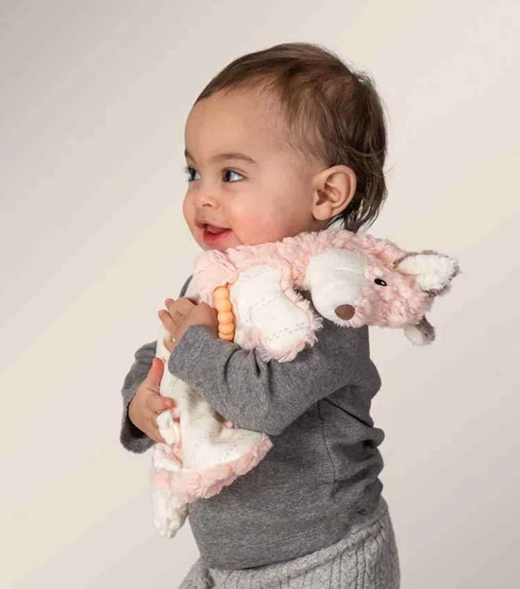 Snuggy Nuggles are perfect for baby’s imagination and rest. Super soft with a soothing teether and knots for baby’s fun and play.