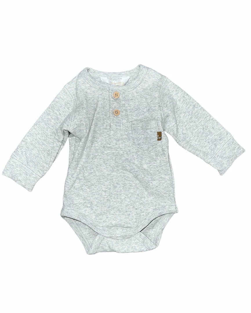 Mayoral Grey Ribbed Onesie with Henley style Buttons & Pocket.
