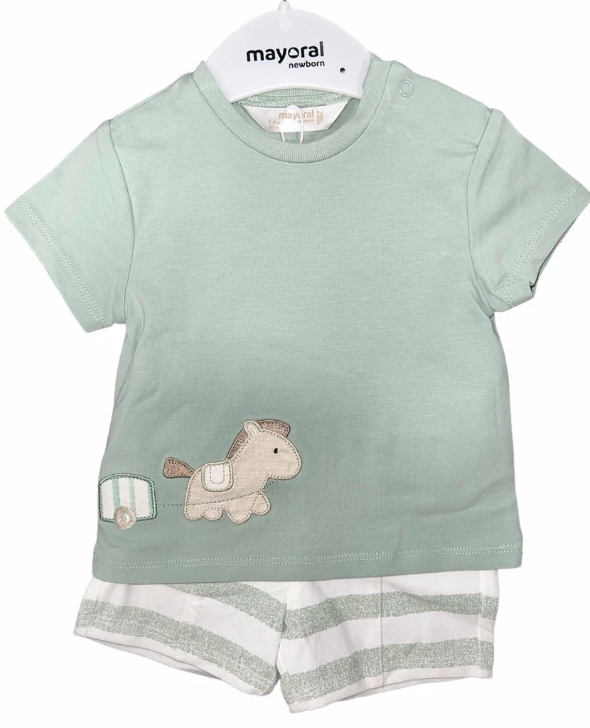 Flash Sale 😀 Mayoral Spring Spring/Summer 2023 Sage Pony Striped Short Set 😉