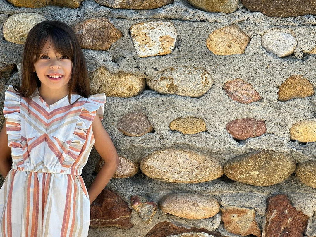 Striped Ruffle Jumpsuit by Poppet & Fox.
