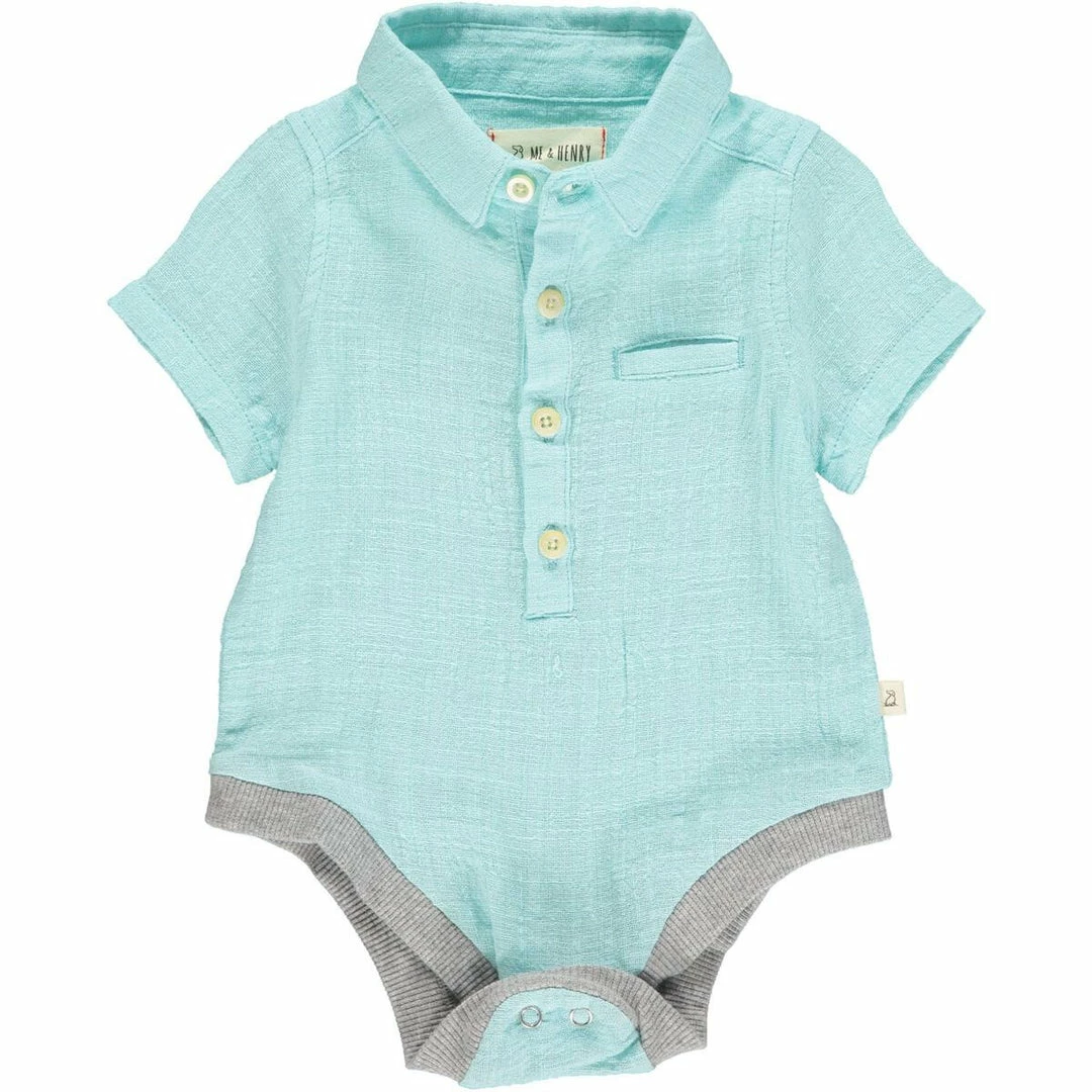 Brand new ๐ Me & Henry Spring/Summer 2023 Aqua Cotton Helford Short Sleeve Onesie โ