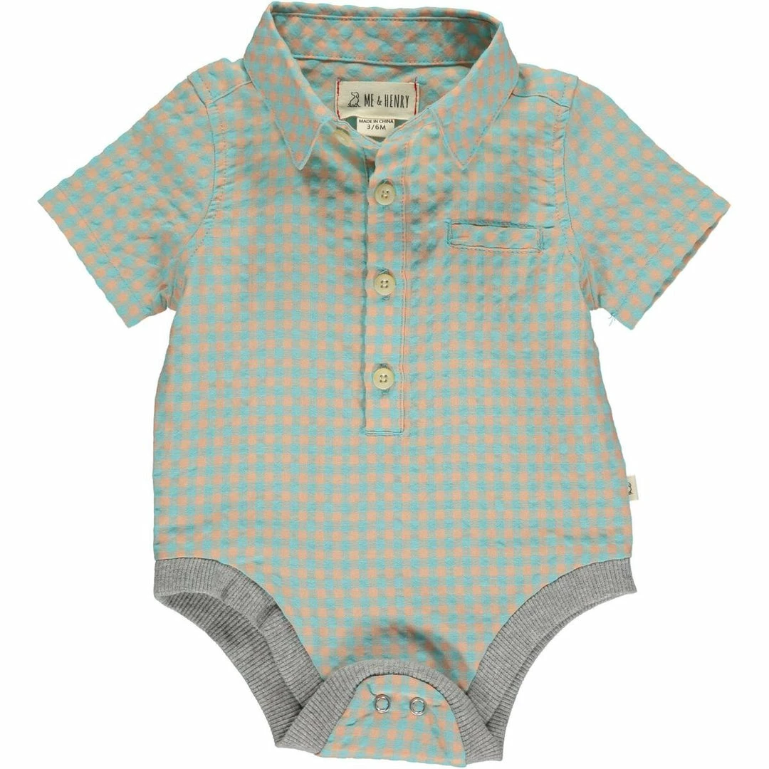 Hot Sale ๐ Me & Henry Spring/Summer 2023 Coral/Sky Plaid Helford Short Sleeve Onesie โ๏ธ