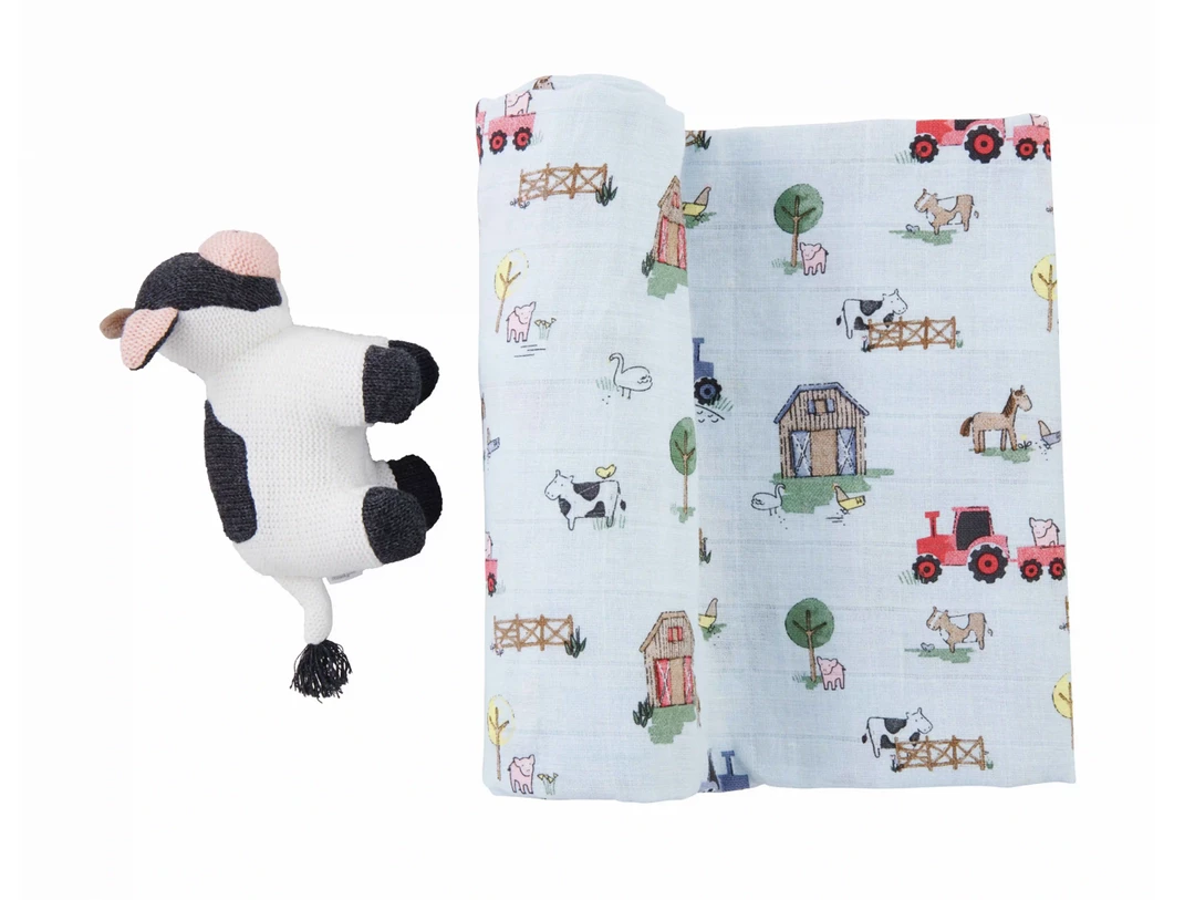 Coupon ๐ฏ Mudpie Accessories Cow Swaddle Blanket & Rattle Baby Accessories ๐