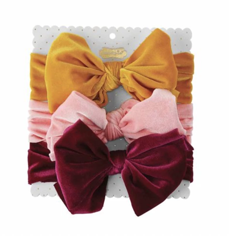 Set of three stretch velvet bow headbands.