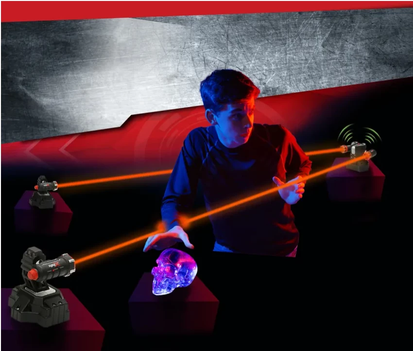 - CUSTOMIZABLE ALERT: Sounds alarm or flashes light when invisible barrier is passed – alerting Jr. Spies of intruders.