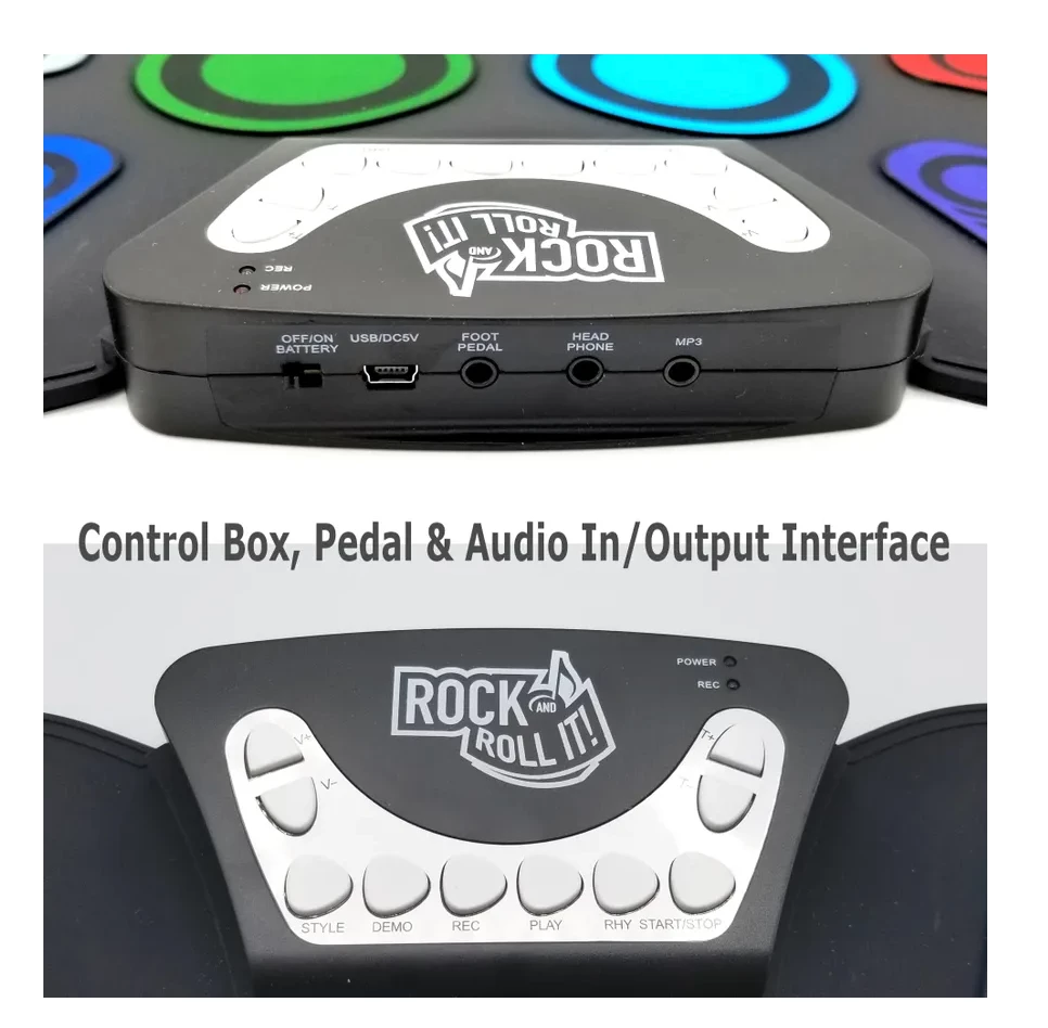 - PLAY AND PRACTICE ANYWHERE: The drum kit features flexible roll-up design, battery and USB power options (cord included), and audio input/output (heaphones included) for fun, portable, on-the-go rock sessions!