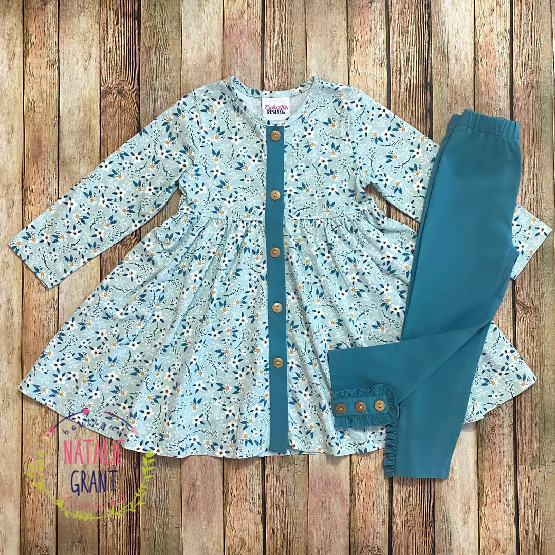 Natalie Grant Mint Grey Floral Dress Set.