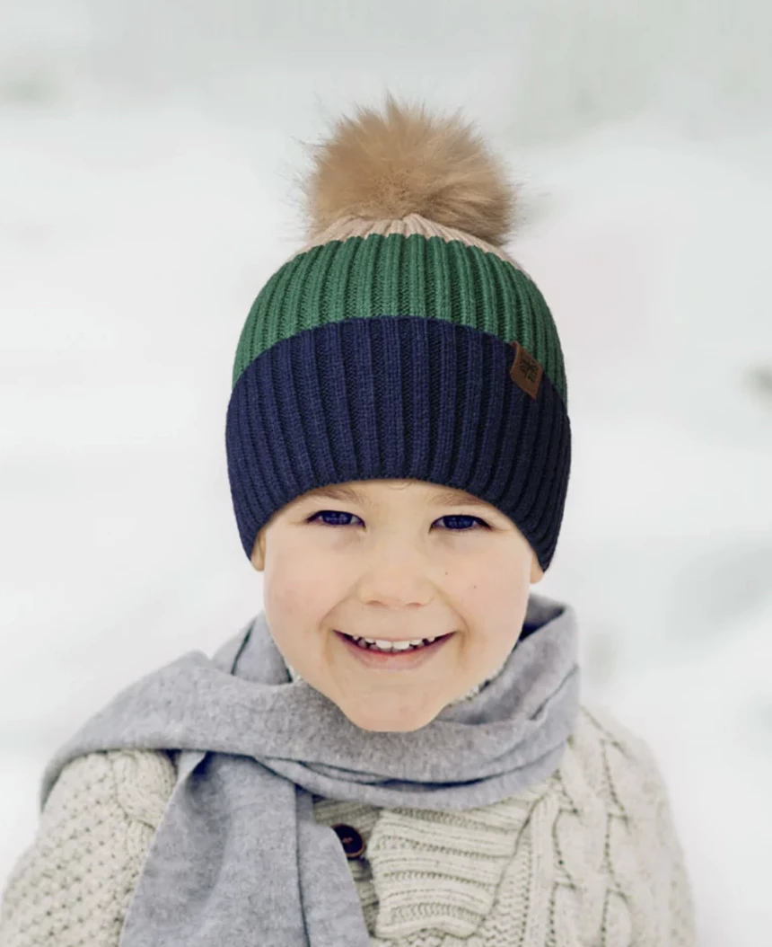 These stretchy kid’s hats are made with warm rib knit and topped with a fun vegan fur puff. Cute striped colors and coordinatingย Brittโs Knitsยฎ Kidโs Wonderland Glovesย make this hat a cold-weather staple kids will want to keep on.