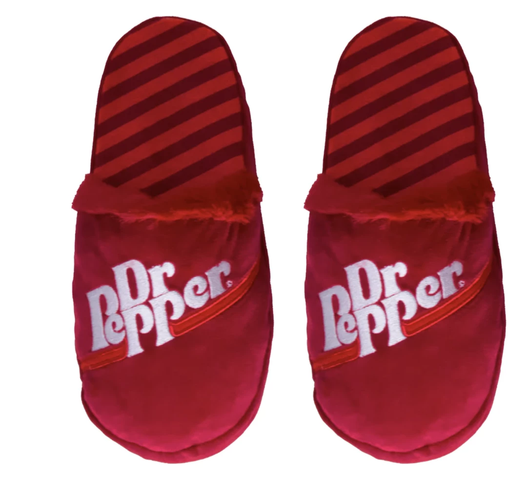 I’m a pepper, he’s a pepper, she’s a pepper, we’re a pepper, wouldn’t you like to be a pepper too? Well, now you can be in these stylin Dr. Pepper slide on slippers.