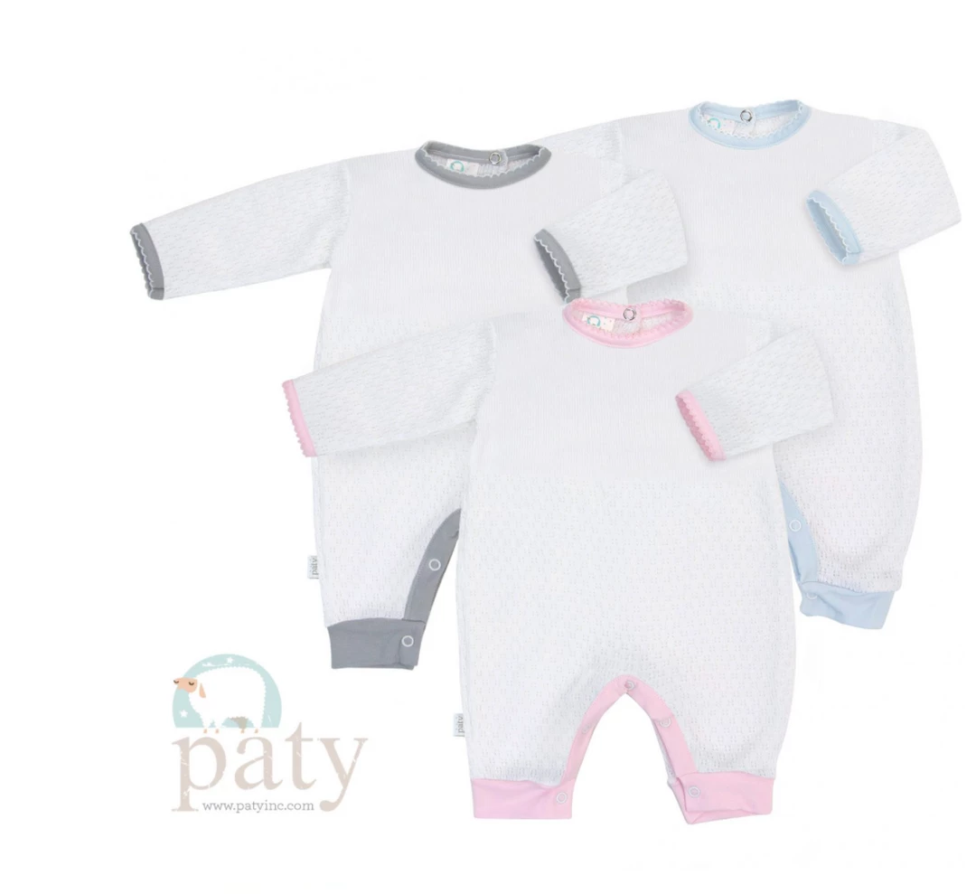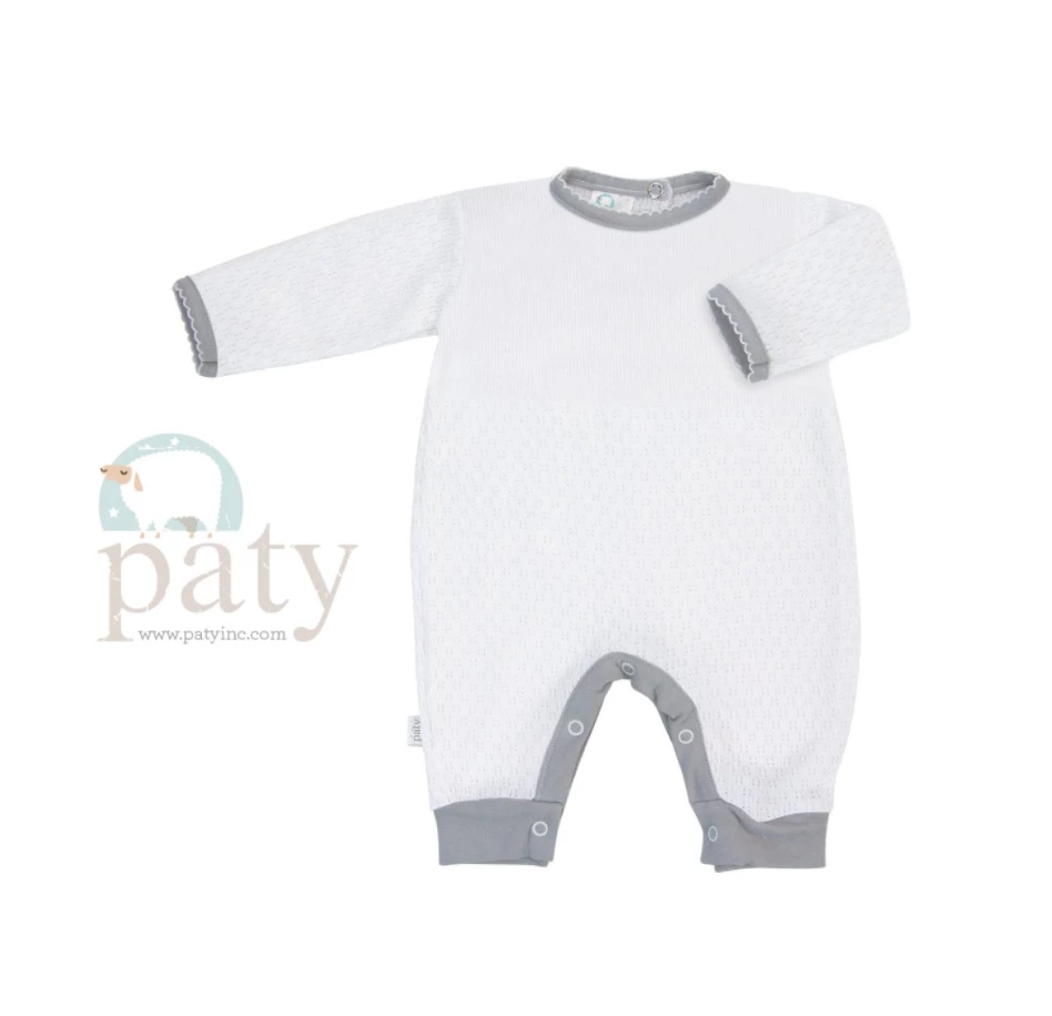 Paty Romper. White with Grey Trim.