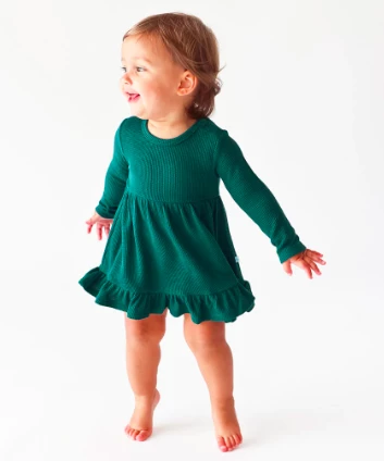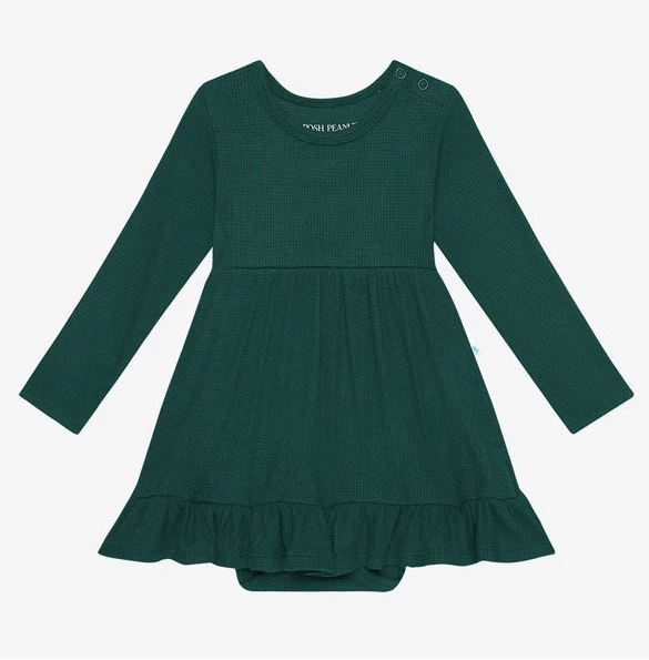 Posh Peanutยฎ long-sleeveย bodysuit dreses are perfect for cooler months in a signature, ultra-soft Pรคpookยฎ bamboo. Ruffle details, scoop neckline, and snap closure on the shoulder for fast and easy changing.ย
