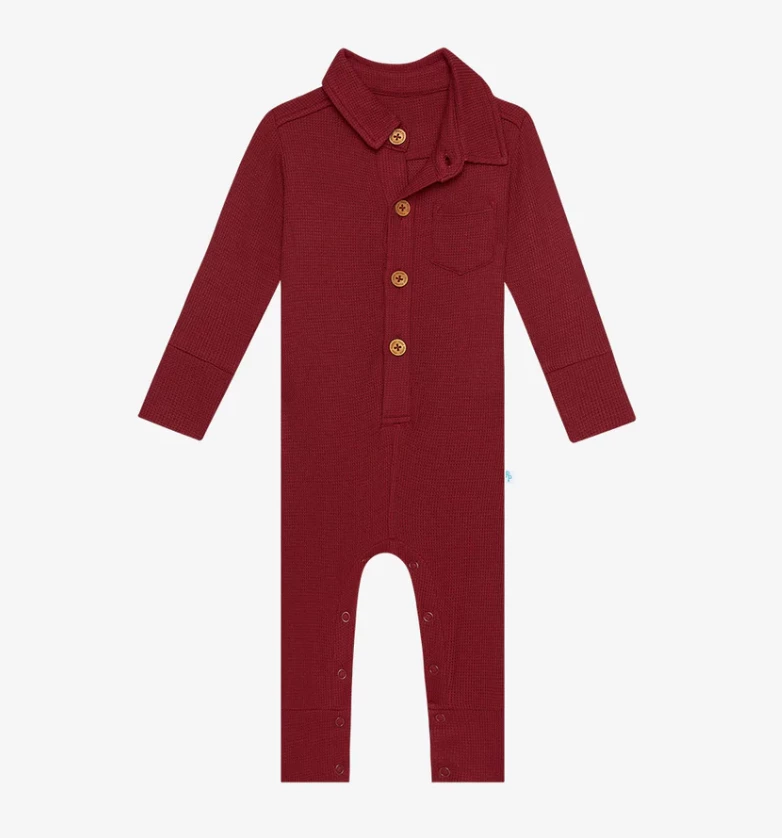 Cute, yet chic! Dress up your little one in our collared long rompers made from our signature Pรคpookยฎ viscose from bamboo. Beautifully lined collar in complementing trim. Long sleeve rompers are perfect to layer for cooler months. Functional wood buttons and snaps for easy changes.