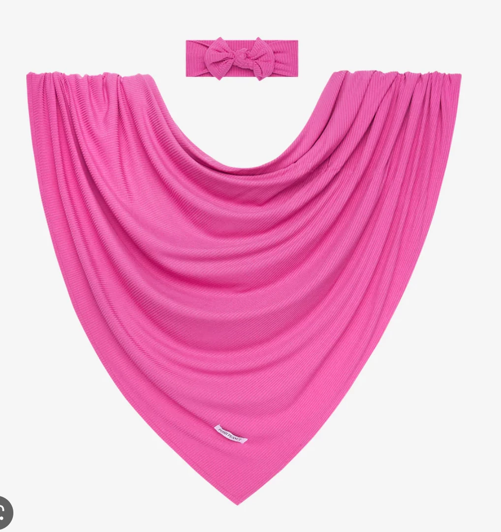 Our signature swaddle & headband set from our Posh Violet Ribbed collection is lightweight, breathable, & stretchy, making it versatile as your peanut!