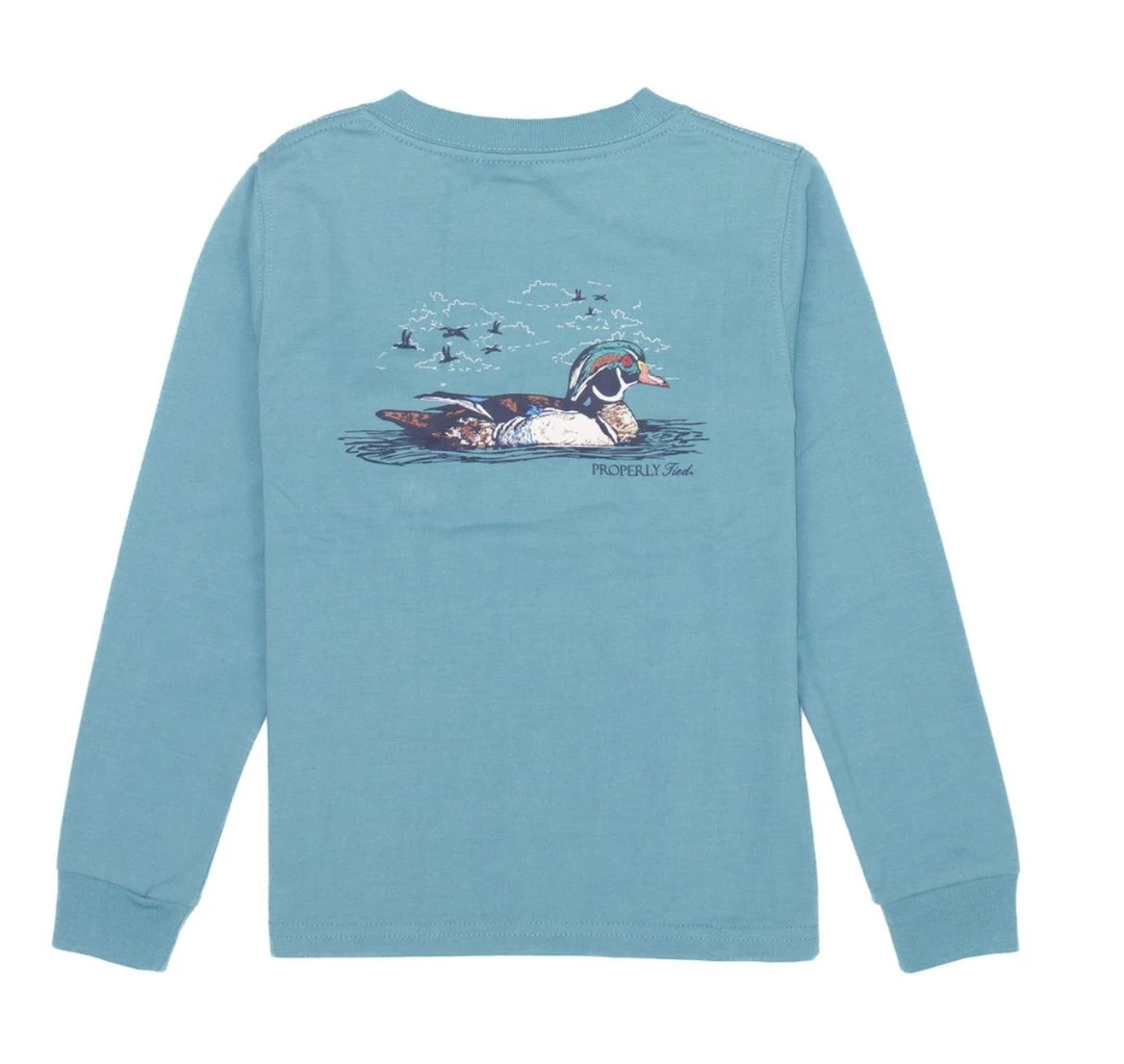 Properly Tied Long Sleeve Wood Duck Tee in Powder Blue.