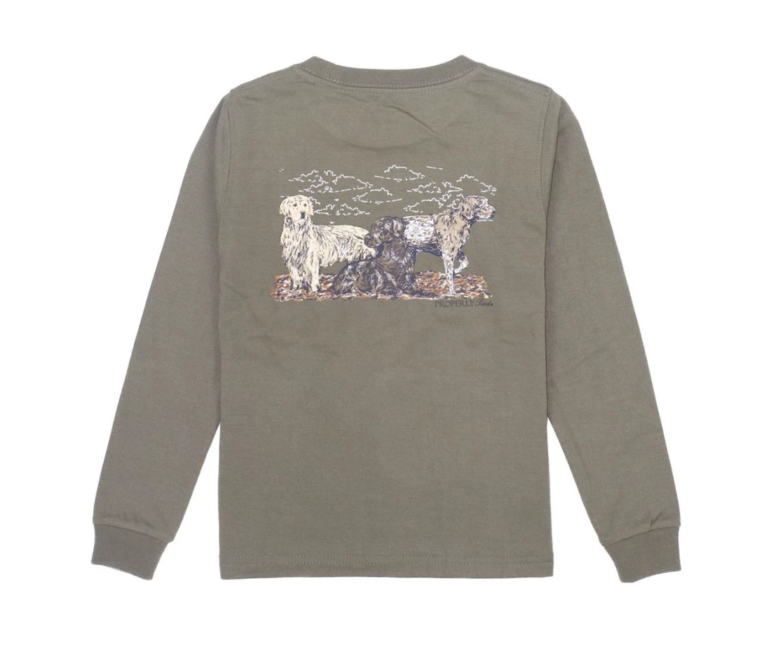 Properly Tied Long Sleeve Hunting Dogs Tee in Tan.