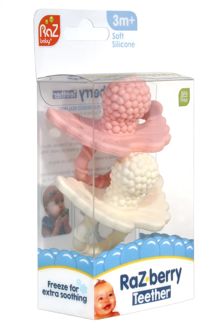 Brand new ๐คฉ RazBaby Baby Accessories Pink/White Razberry Silicone Teether 2pk โค๏ธ