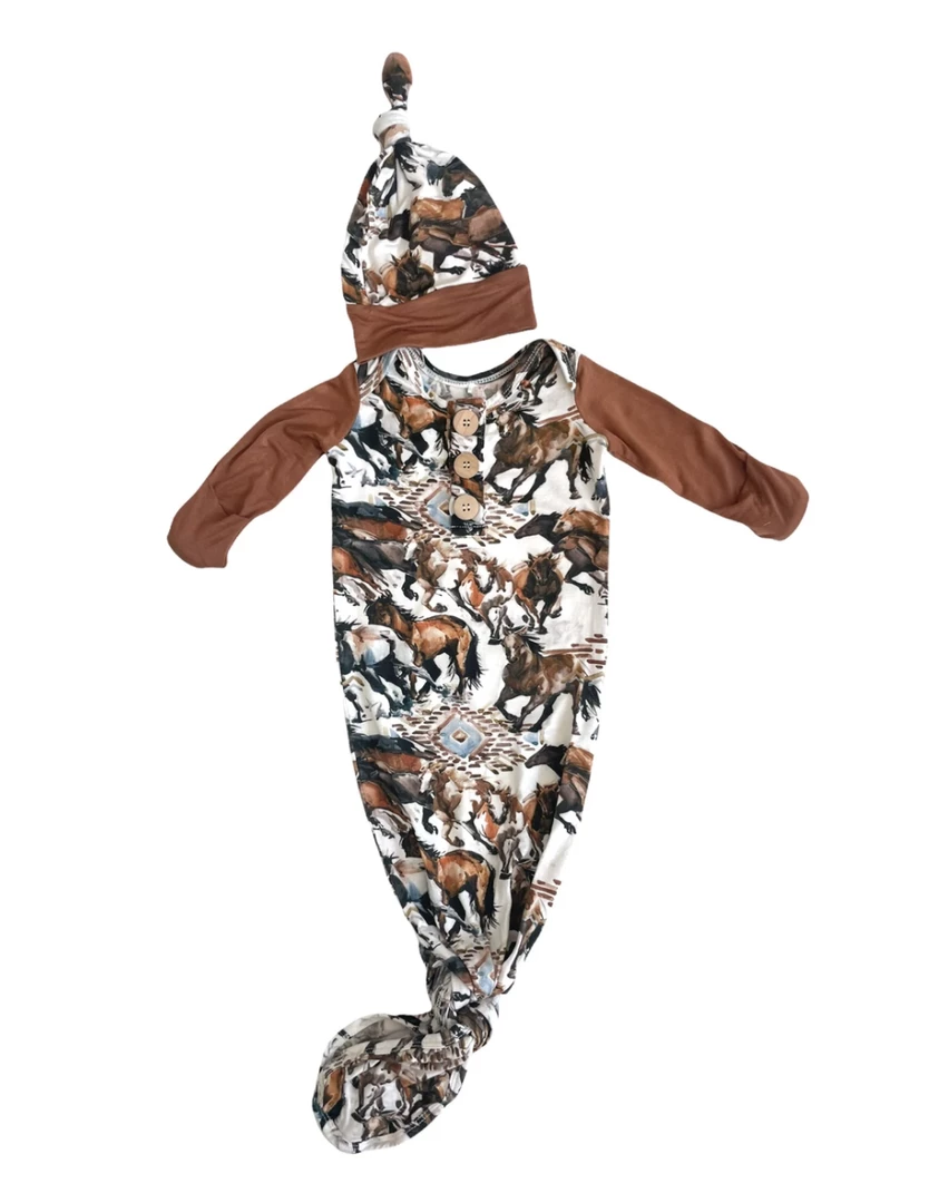 New ⭐ Rockin Royalty Infant Clothing Wild Horses Knot Gown & Hat ✔️