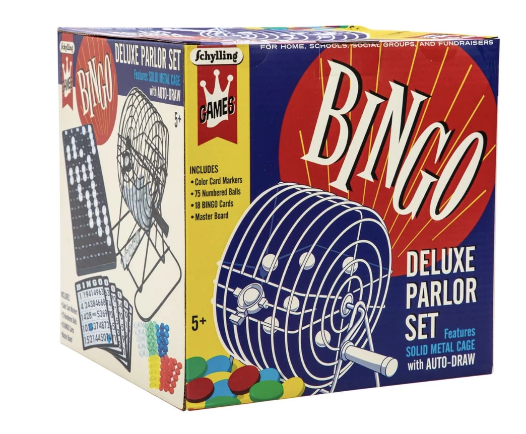 Bring the fun of the bingo hall into your own living room! This fun game features a metal rotary cage with an automatic ball selector. Donβt forget to yell BINGO! when you fill your card!