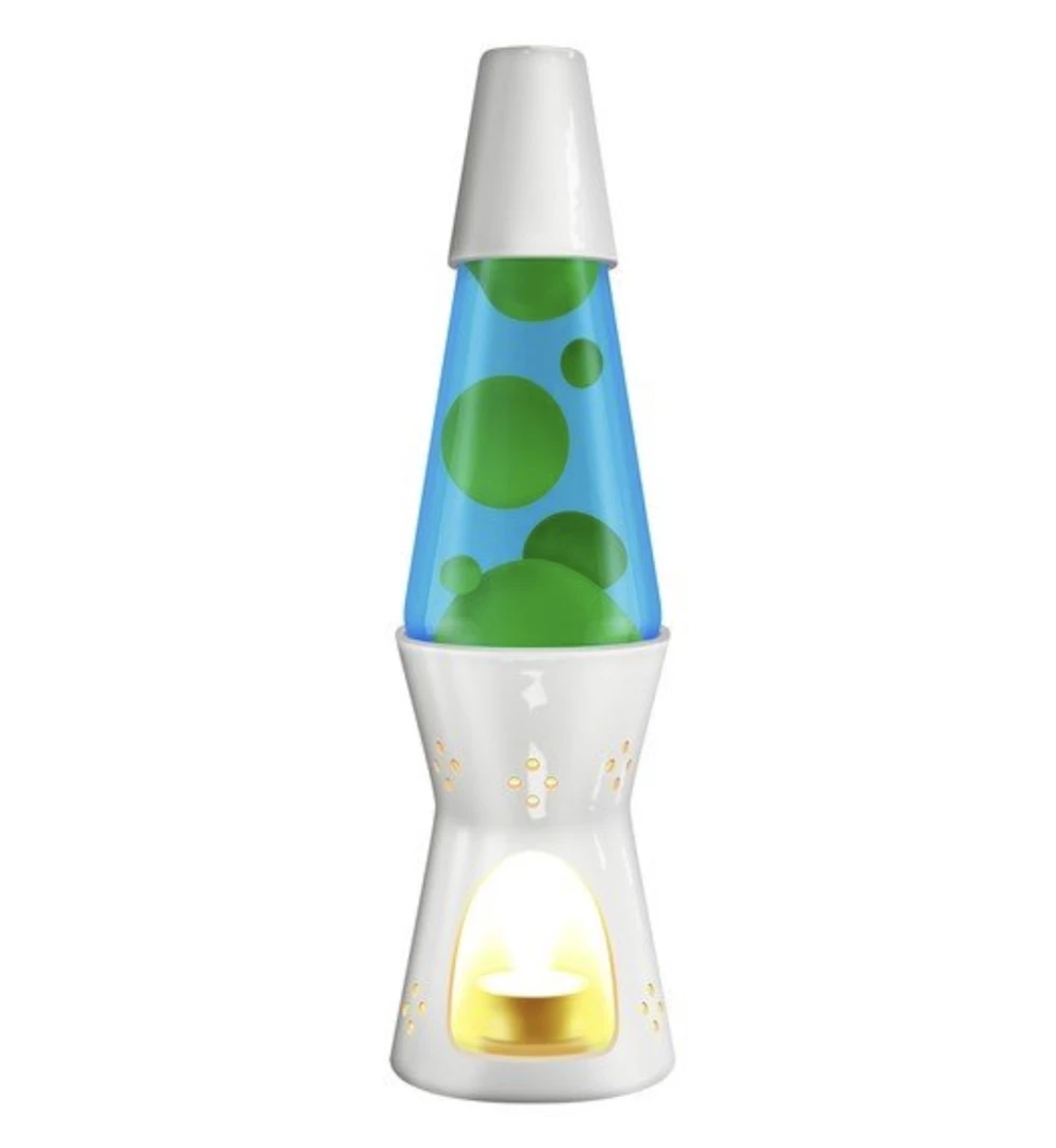 - The heat of the tealight candle within the ceramic base warms the globe, causing the lava to flow