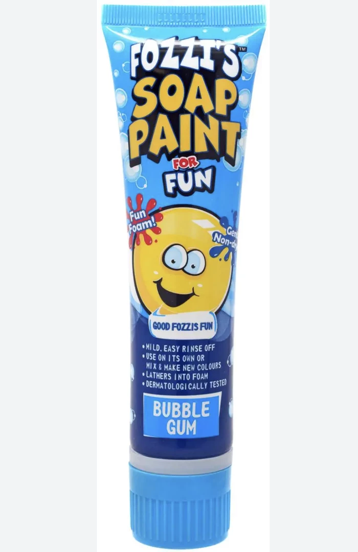 Fozzis Soap Paint makes bath time fun every day of the week. The mild, easy to rinse off formulation with fun fragrance gently cleanses to leave skin clean, soft and smelling great. Paraben free.