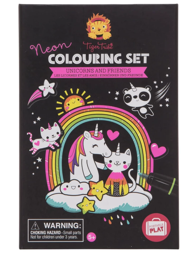 This Neon Coloring Set is jam-packed with activities, neon-color markers and stickers, all designed to keep tigers happy on the go. Everything you need in one self-contained box, with a magnetic flap to keep contents safely stored.