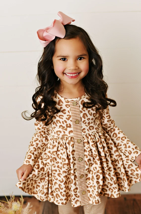 Serendipity Leopard Tunic with Buttons. Paired with Striped Leggings.