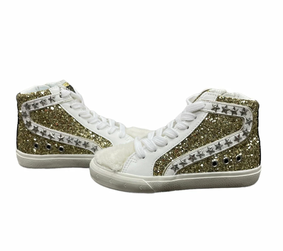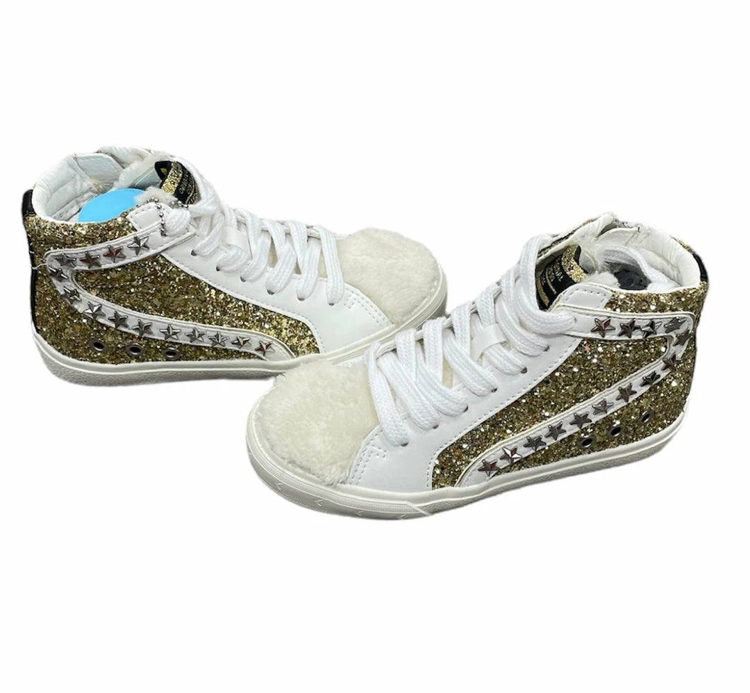 Vintage Havana High Top Shoe with Gold Glitter and Fur top.