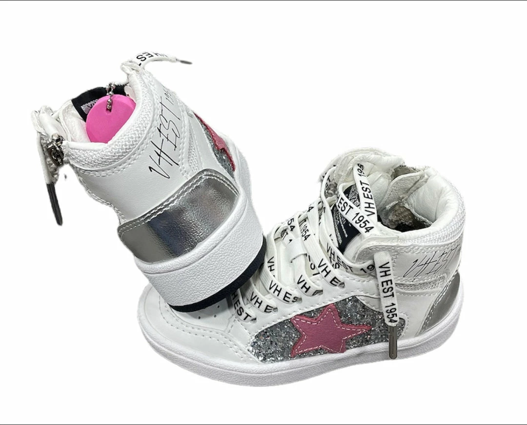 Vintage Havana High Top Sneaker with Pink Star & Silver Glitter.