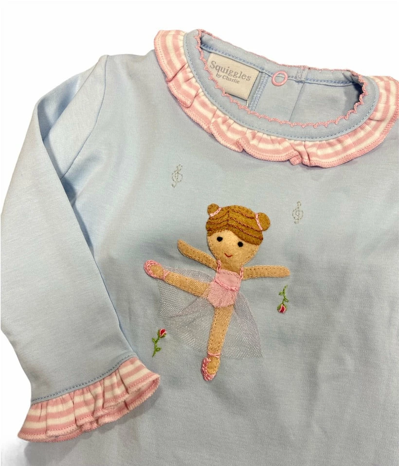 Baby Blue Long Sleeve Tee with Ballerina Applique.