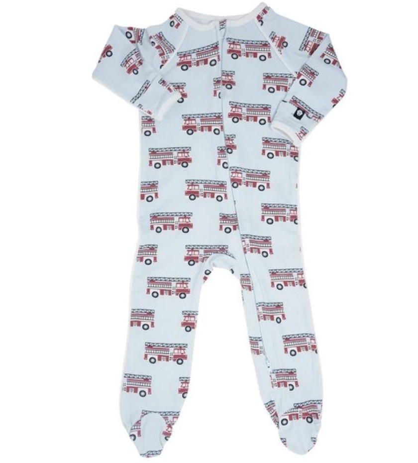 Hot Sale ⌛ Sweet Bamboo FireTruck Piped Zipper Footie 😍