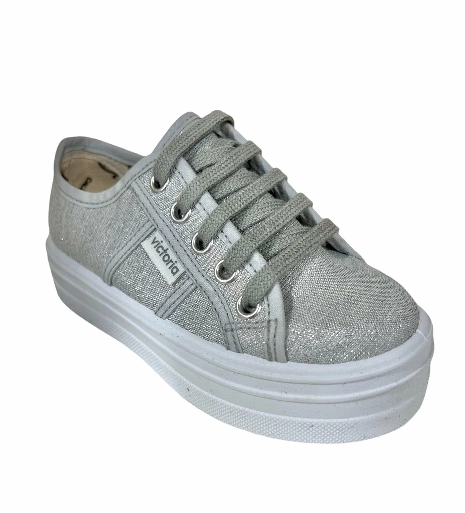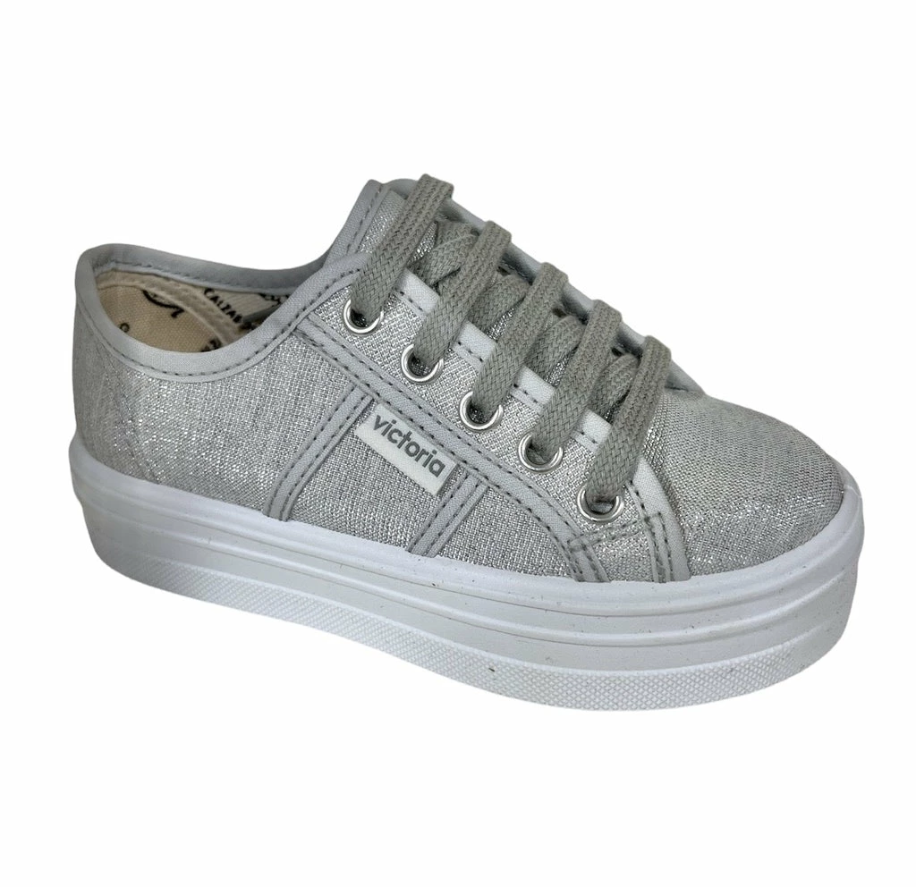 Victoria Silver Sparkle Platform Sneaker for Girls.